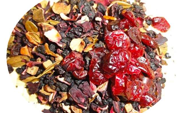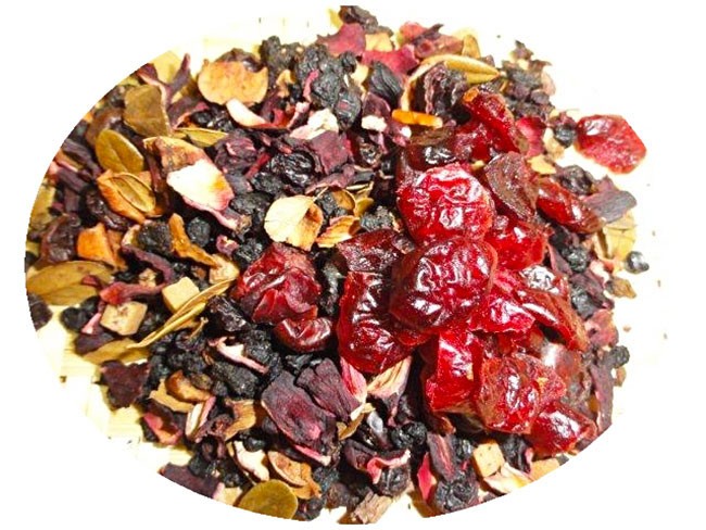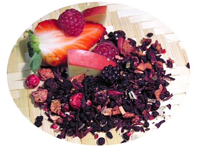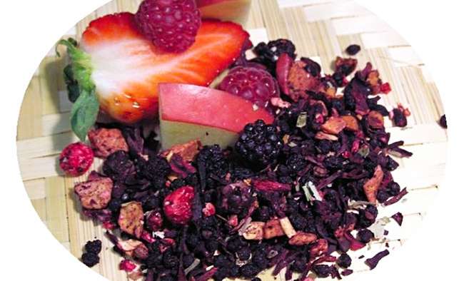 Zloženie: jablká, hrušky, hrozienka, želatínové medvedíky, slivky, pomarančová kôra, červená repa, aróma, puky ruží, slez.
