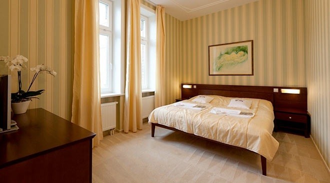 V pamiatkovo chránenej, novozrekonštruovanej secesnej budove v hoteli Sandor Pavillon budete ubytovaný v luxusných klimatizovaných izbách. Vybavenie izieb spĺňa kritéria náročných klientov, poskytuje pocit príjemnej elegancie a komfortu. K pozitívnej atmosfére a hodnotnému pobytu prispievajú: kvalitné svetlé textilné tapety v prírodných farbách, bledý koberec s vysokým vlasom, hnedý nábytok na mieru, kvalitné zdravotné matrace, kvalitná sanita a vysoká čistota v kúpeľni.