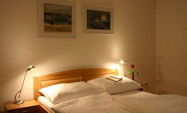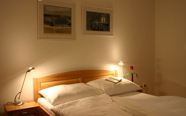Apartmány s dvomi spálňami (celkom 3) sa nachádzajú na prízemí apartmánového domu. Majú 2 samostatné spálne (zvyčajne jednu s manželskou posteľou a jednu s oddelenými posteľami). V obývačke je rozkladateľný gauč, vhodný ako prístelka pre deti alebo manželský pár. Kuchyňa je plne vybavená, vrátane umývačky riadu. Samozrejmosťou je Wi-FI pripojenie a televízor so satelitom. Podlahová plocha apartmánov je cca 75 m2, všetky apartmány majú balkón. Apartmán je nefajčiarsky.