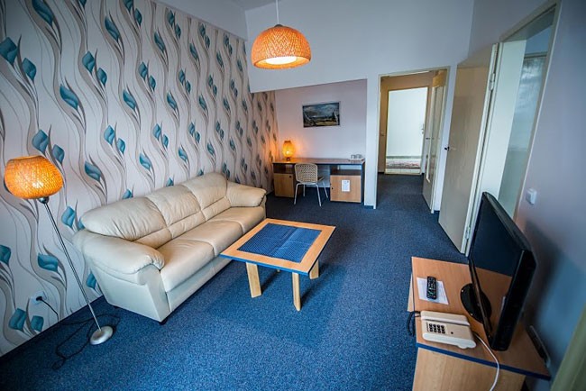 Príjemné hotelové izby Štandard zaistia vaše pohodlie. (zrekonštruovaná hotelová izba s toaletou, sprchou alebo vaňou, TV, SAT TV, vnútorným TV kanálom, chladničkou, telefónom, rádiom, zdravotníckou signalizáciou prvej pomoci).