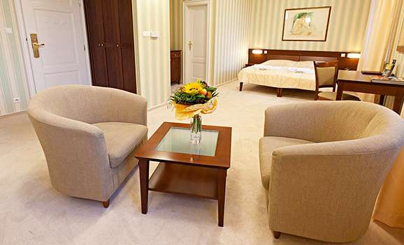 V pamiatkovo chránenej, novozrekonštruovanej secesnej budove v hoteli Sandor Pavillon budete ubytovaný v luxusných klimatizovaných izbách. Vybavenie izieb spĺňa kritéria náročných klientov, poskytuje pocit príjemnej elegancie a komfortu. K pozitívnej atmosfére a hodnotnému pobytu prispievajú: kvalitné svetlé textilné tapety v prírodných farbách, bledý koberec s vysokým vlasom, hnedý nábytok na mieru, kvalitné zdravotné matrace, kvalitná sanita a vysoká čistota v kúpeľni.