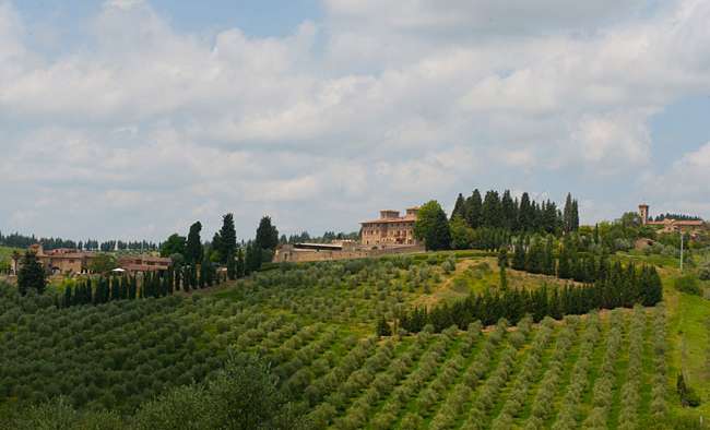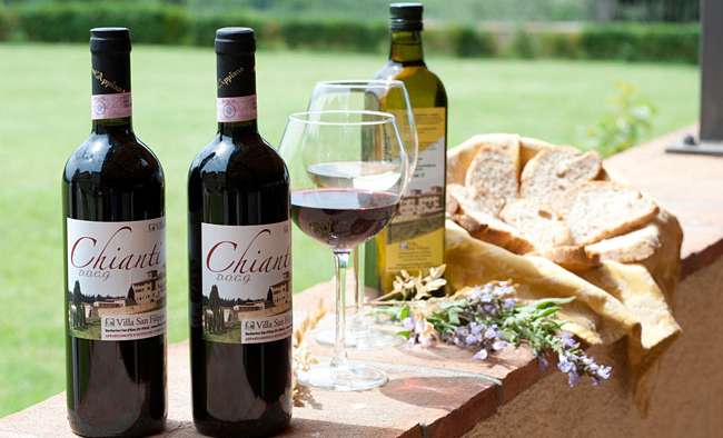 Vila San Filippo využíva vlastné prírodné zdroje a vyrába si olivový olej a víno Chianti.