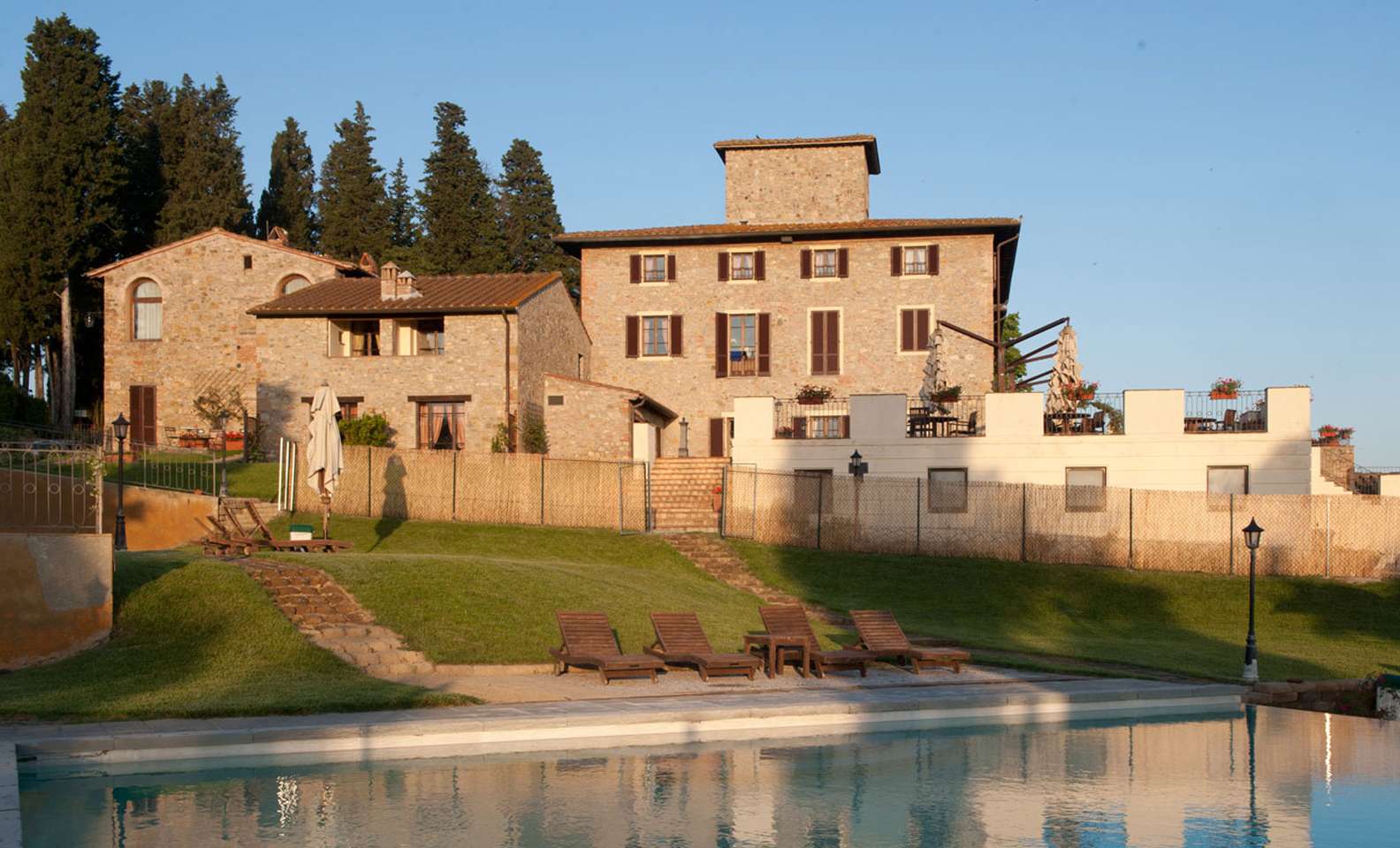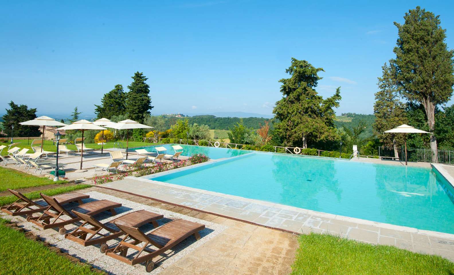Vila má tri panoramatické bazény s rôznymi úrovňami. Hostia tu môžu relaxovať a ochutnávať typické produkty, ktoré patria do toskánskej tradície.