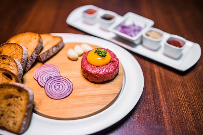 Ozajstná gurmánska lahôdka. 100 g tatarák z pravej hovädzej sviečkovice a 6 ks hrianok. V PorterHouse si ho môžete namiešať sami podľa chuti alebo si ho nechajte priniesť už namiešaný a rovno sa do neho pustite.