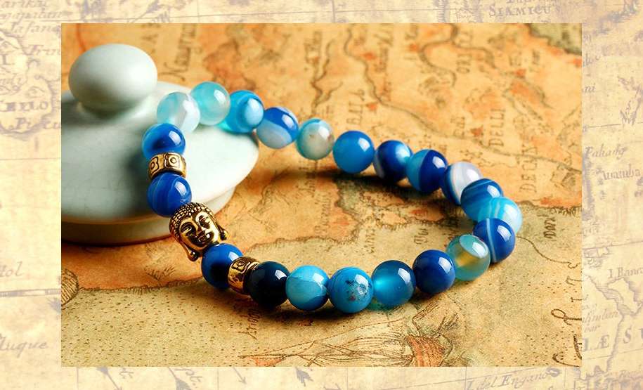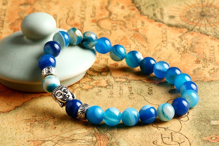 Buddha náramok – modrý achát – zlaté alebo strieborné prevedenie
