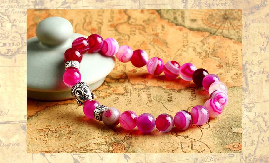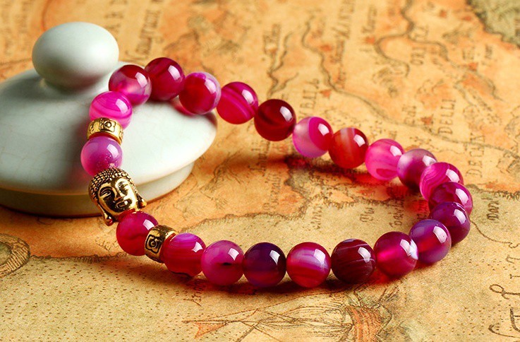 Buddha náramok – ružový achát – zlaté alebo strieborné prevedenie