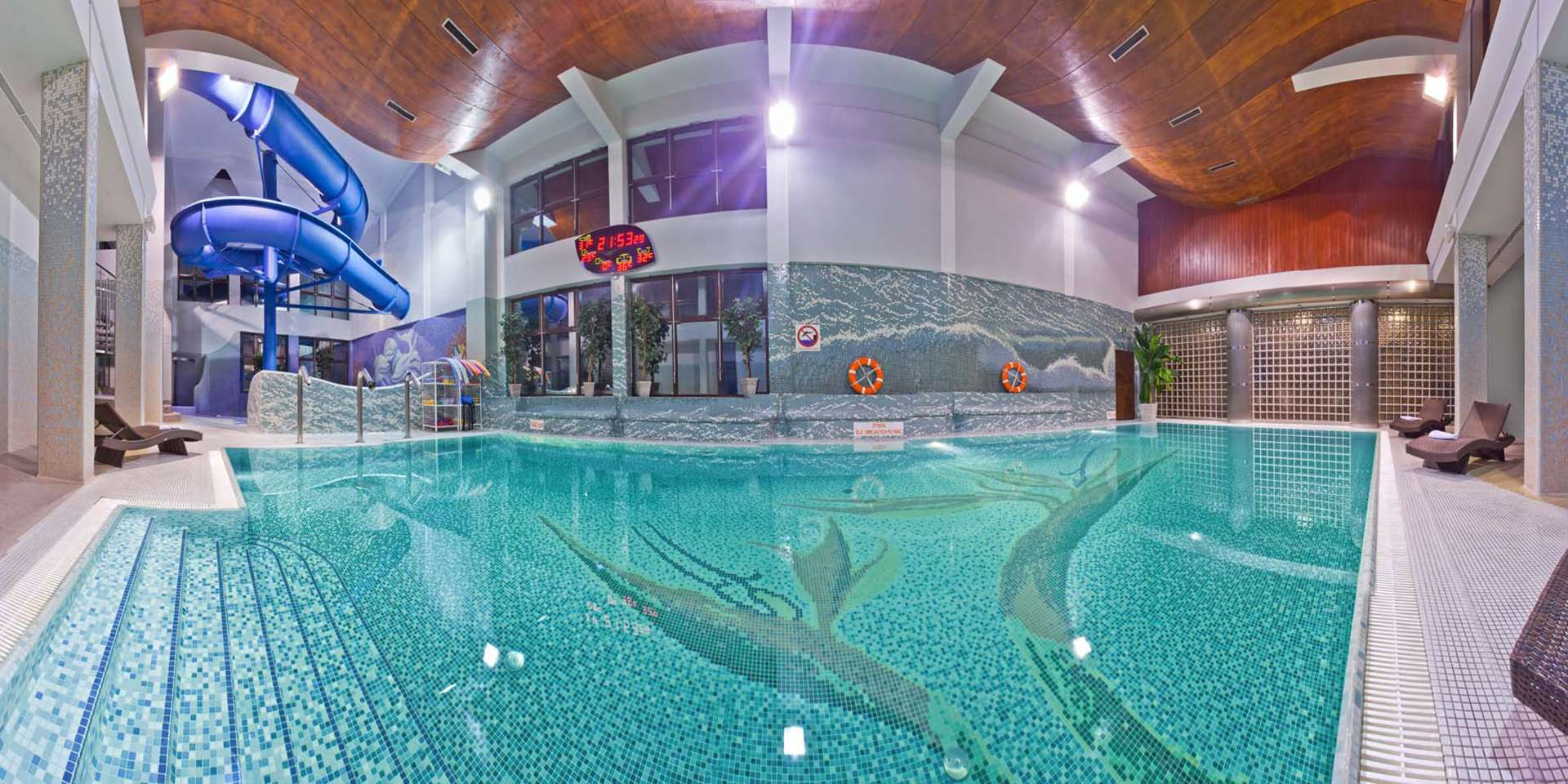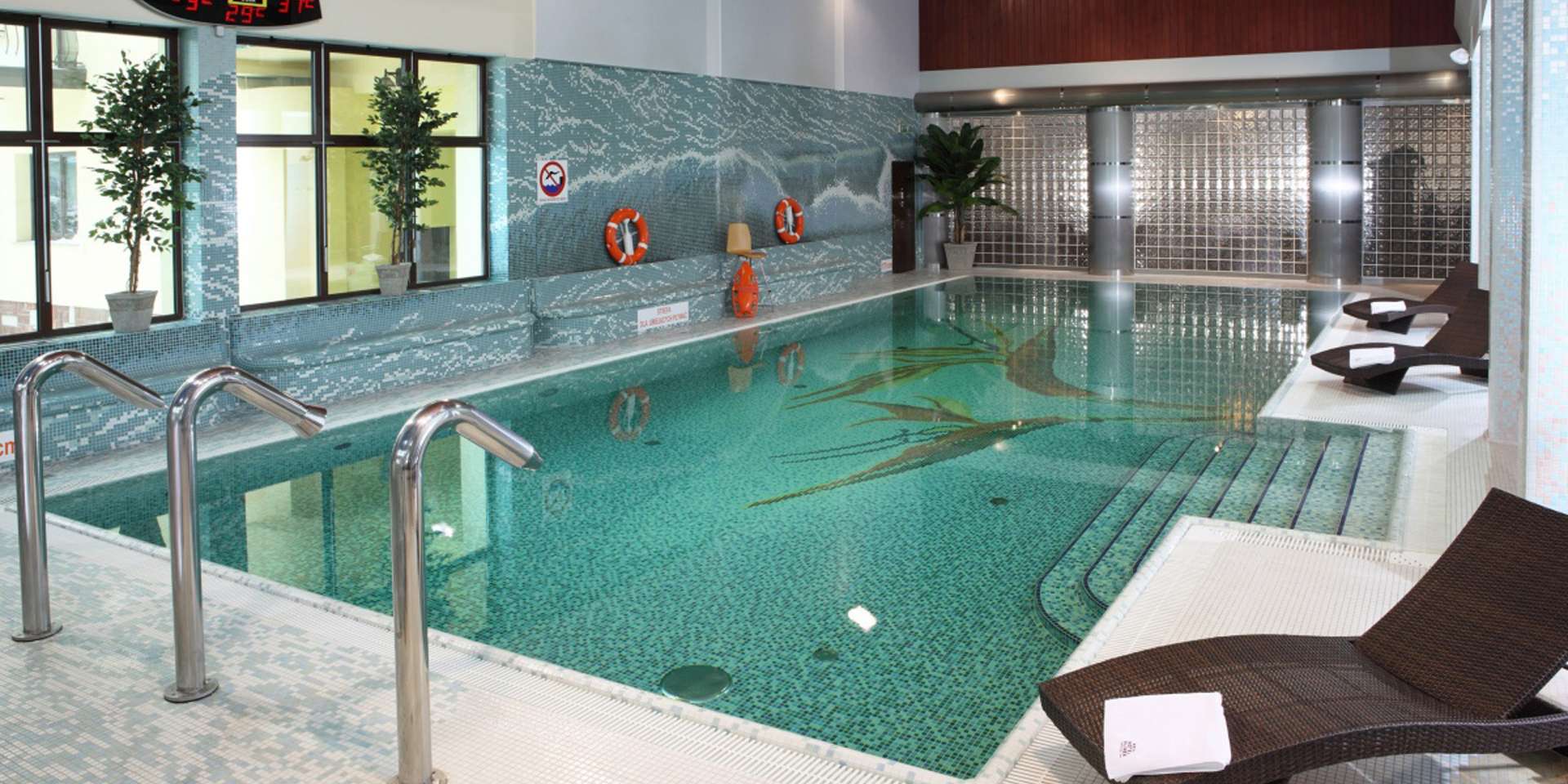 Bazénový komplex v Hoteli**** SPA Klimek poteší každého z návštevníkov. Hosťom je k dispozícii priestranný bazén (6 m x 15 m) vybavený sadou vodných trysiek, gejzírom i protiprúdom.