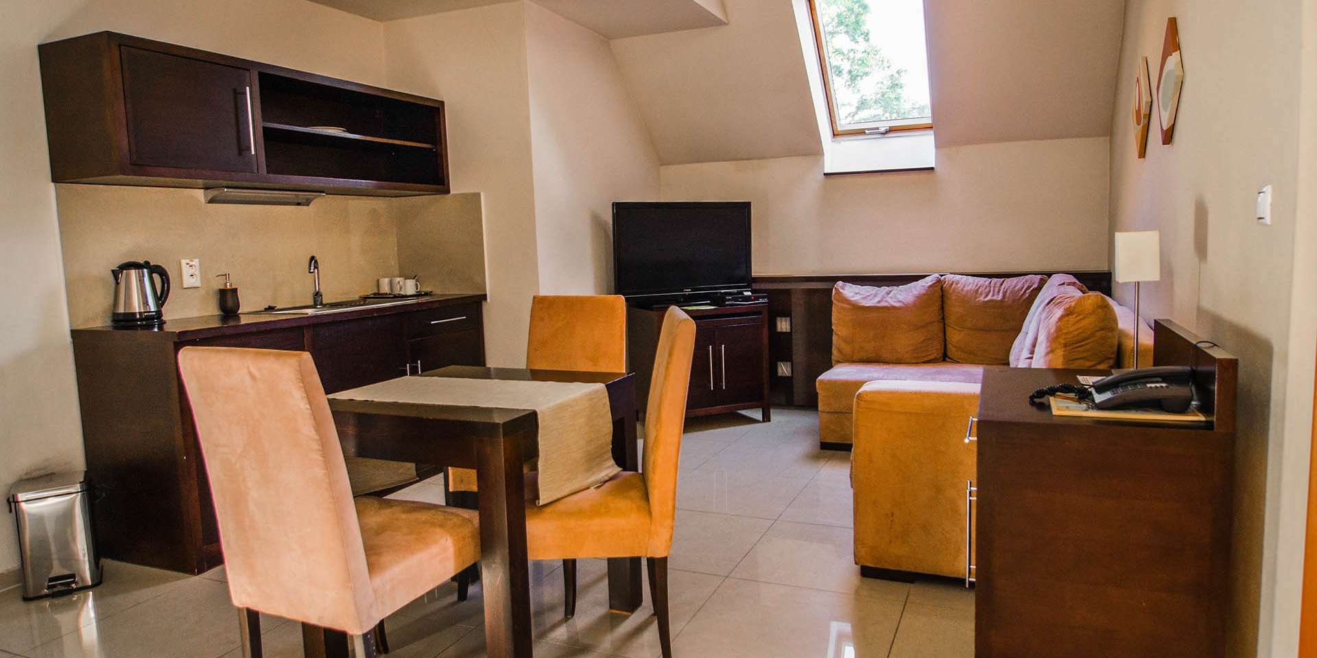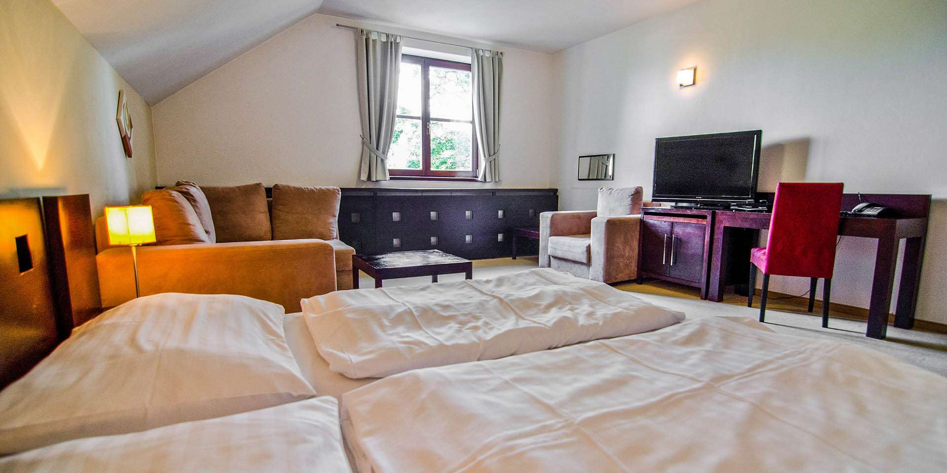 Hotel poskytuje kvalitné ubytovanie v komfortne zariadených dvojlôžkových izbách (double room) a luxusných apartmánoch (suite). Ponúkajú 18 izieb, z toho 10 dvojlôžkových, 6 apartmánov DELUXE a 2 apartmány Standard.