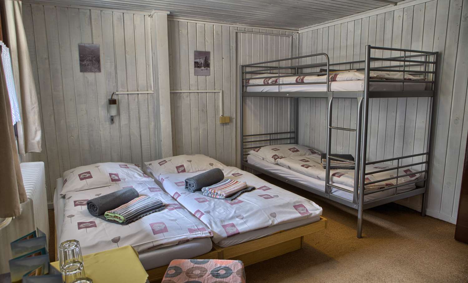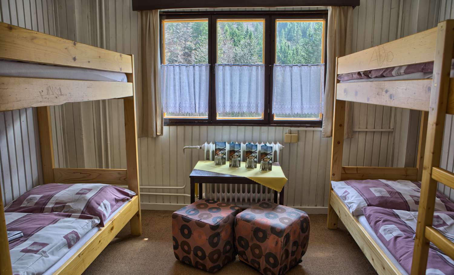 Izba je vybavená umývadlom a dvomi poschodovými posteľami