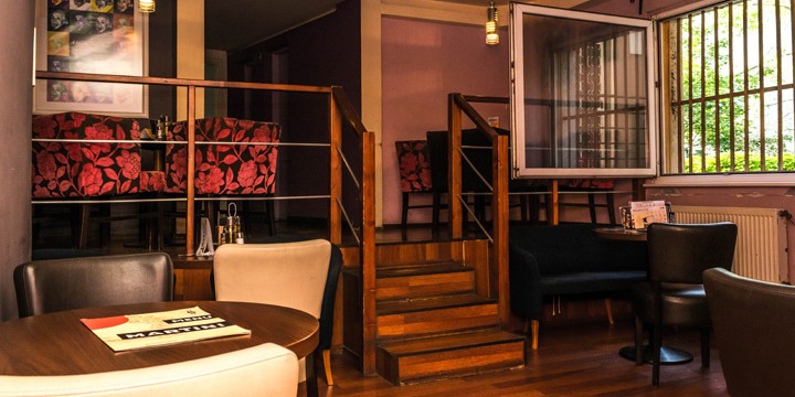 sa nachádza v centre Bratislavy na Námestí SNP 3 oproti hlavnej pošte za pamätníkom padlých hrdinov. Po schodoch cez vyvýšenú letnú terasu vstúpite do vzájomne prepojených interiérov so širokou ponukou káv, nealkoholických nápojov, miešaných nápojov, horúcich čokolád, vitamínových kokteilov a jedál (pizza, šaláty, palacinky, cestoviny, minútky z kuracieho a bravčového mäsa alebo lososa).