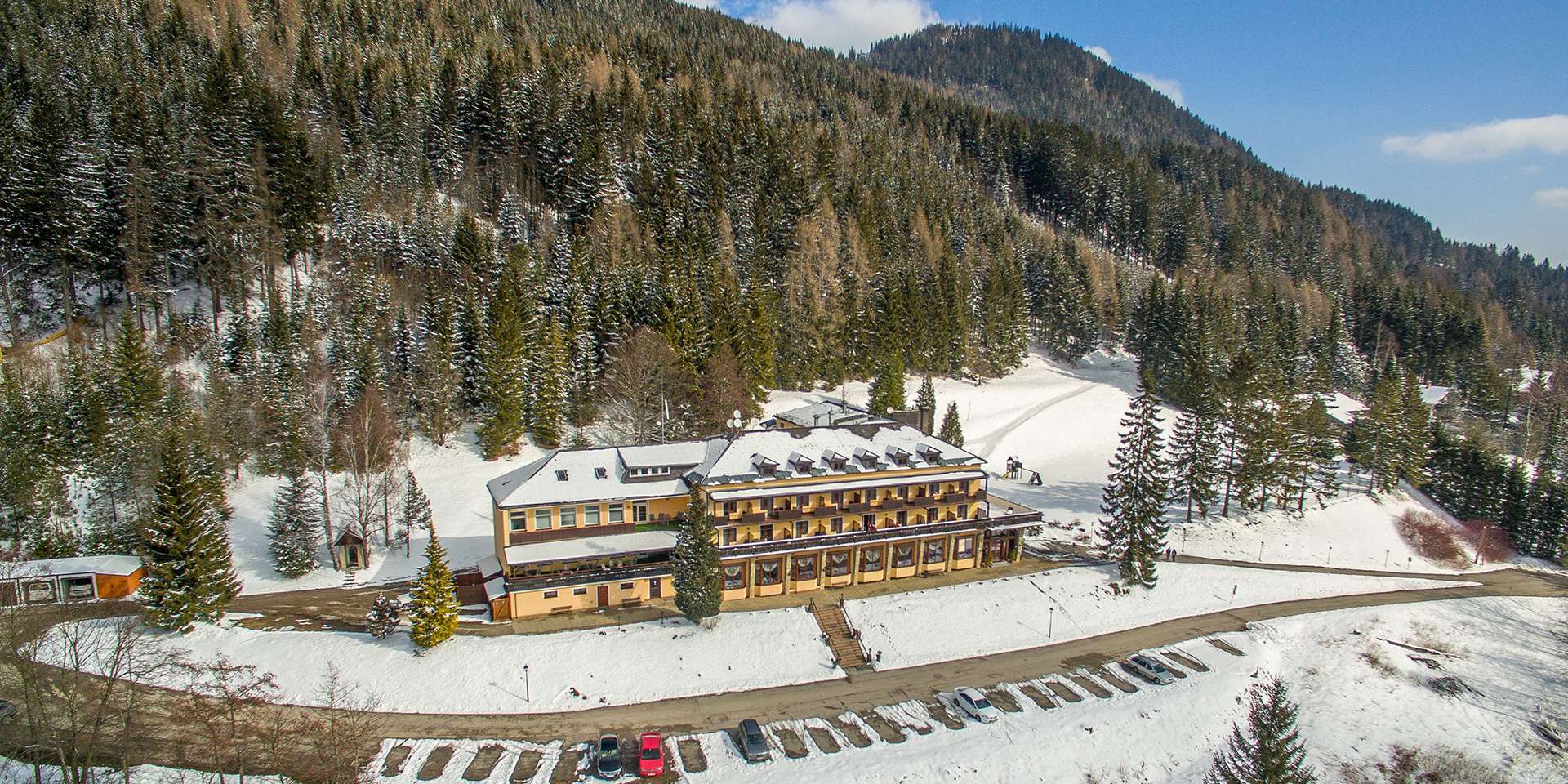 Každý vodič ocení príjazdovú cestu priamo pred hotel, umožňujúcu dostatočný komfort pre vyloženie batožiny, bicyklov či lyží a potom parkovanie, ktoré je pre hotelových hostí zadarmo.