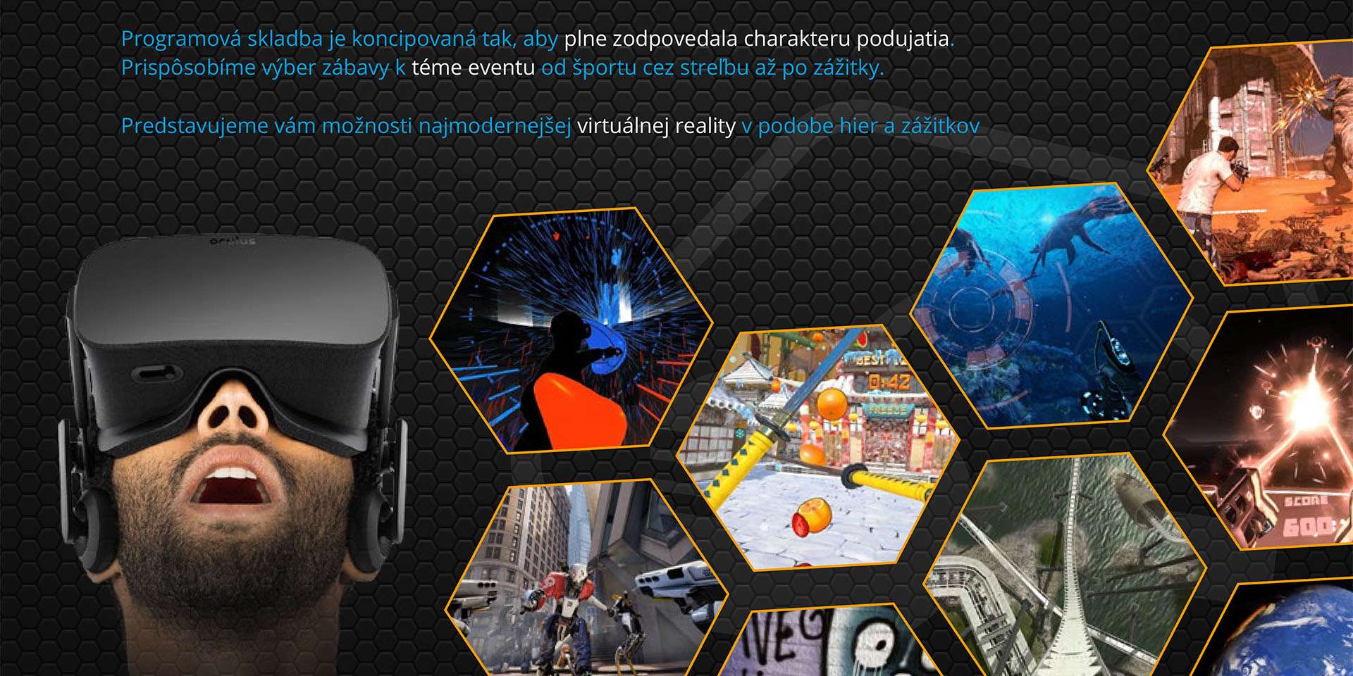 Nechajte sa obklopiť svetom virtuálnej reality a zažite to, o čom druhí len píšu. Staňte sa pilotom vesmírnej flotily, vyrazte za dobrodružstvom, na ktorom spoznáte morské dno, majte miernu paranoju zo zombíkov, pristaňte na Mesiaci alebo zažite jazdu na gigantickej horskej dráhe, z ktorej sa vám skrúti žalúdok a zatočí hlava. Možnosti sú naozaj nekonečné. Virtuálna realita vás jednoducho dostane do kolien.