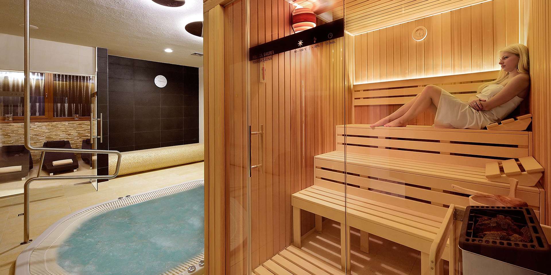 V cene kupónu využiteľného cez víkend je aj 1x vstup do novovybudovaného wellness centra - jacuzzi, fínska sauna, parná sauna, infra sauna, odpočívareň. V spolupráci s partnerským wellness centrom Wellness Gardenia Donovaly.