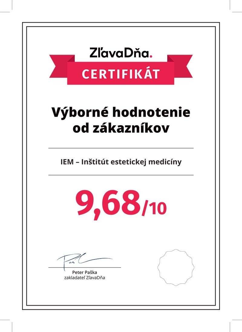 Inštitút estetickej medicíny získal certifikát za výborné hodnotenia od zákazníkov ZľavaDňa už po druhý rok. Je to dôkaz toho, že IEM patrí medzi jednotky na trhu aj z vášho pohľadu – z pohľadu spokojných zákazníkov.