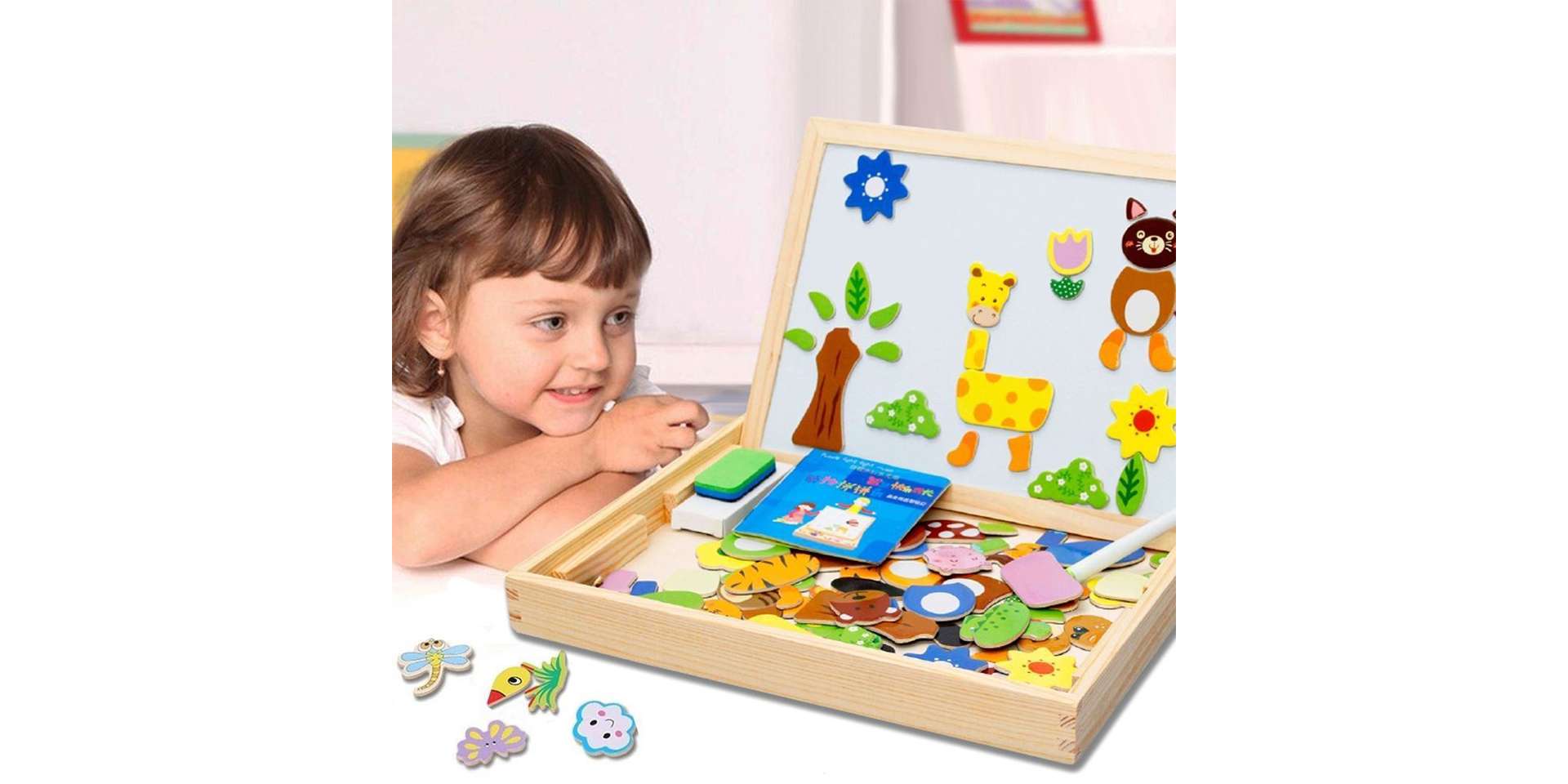 Kto sa hrá ten nehnevá! Predstavujeme vám detskú magnetickú tabuľu s ktorou čaká na deti iba samá zábava! Táto tabuľa ponúka širokú škálu možností. Tabuľa je z jednej strany magnetická a naviac potiahnutá špeciálnou fóliou na ktorú je možné písať špeciálnou fixkou, ktorá je samozrejme súčasťou balenia. Z druhej strany je to klasická tabuľa, akú poznáme zo školy a môžete na ňu písať kriedami.