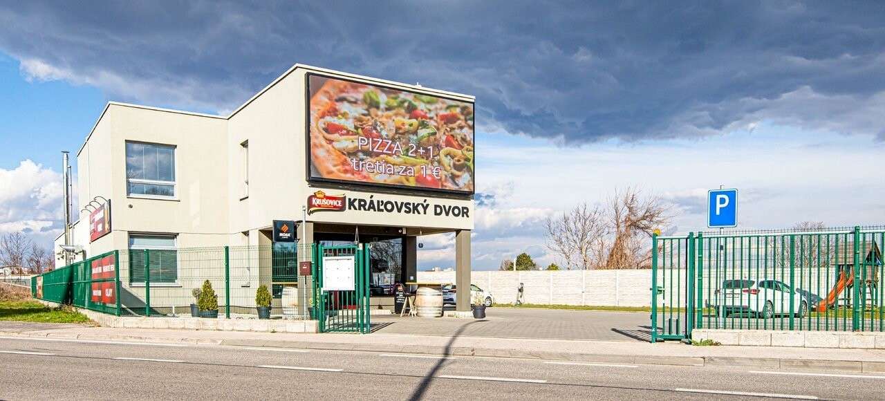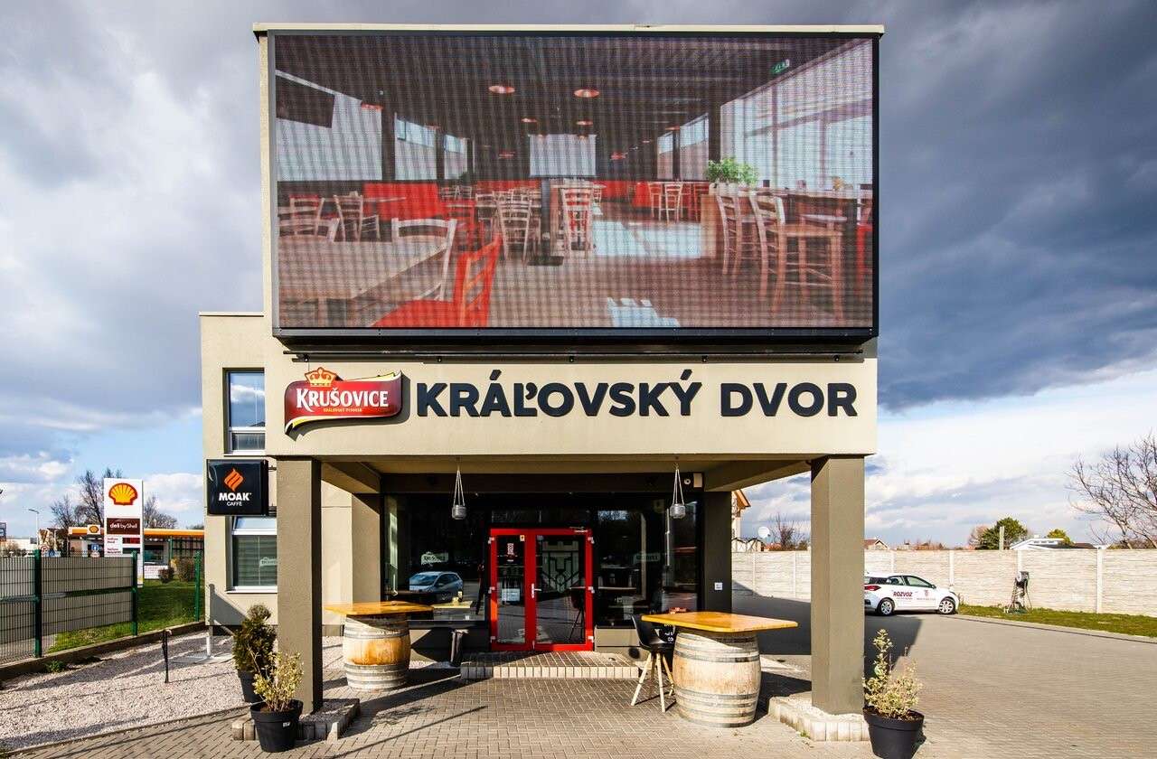 Presne takúto filozofiu razia v reštaurácii a pivárni Kráľovský dvor. Nájdete tu slovenskú a českú tradičnú a poctivú kuchyňu, čapované tankové pivá Krušovice, lahodnú kávu a nechýba ani detské ihrisko a vlastné parkovisko. Veľkoplošné premietacie plátno poteší každého športového fanúšika, rodiny s deťmi určite ocenia vlastný areál a všetci spolu si môžete dopriať relaxačné posedenie pri dobrom jedle.