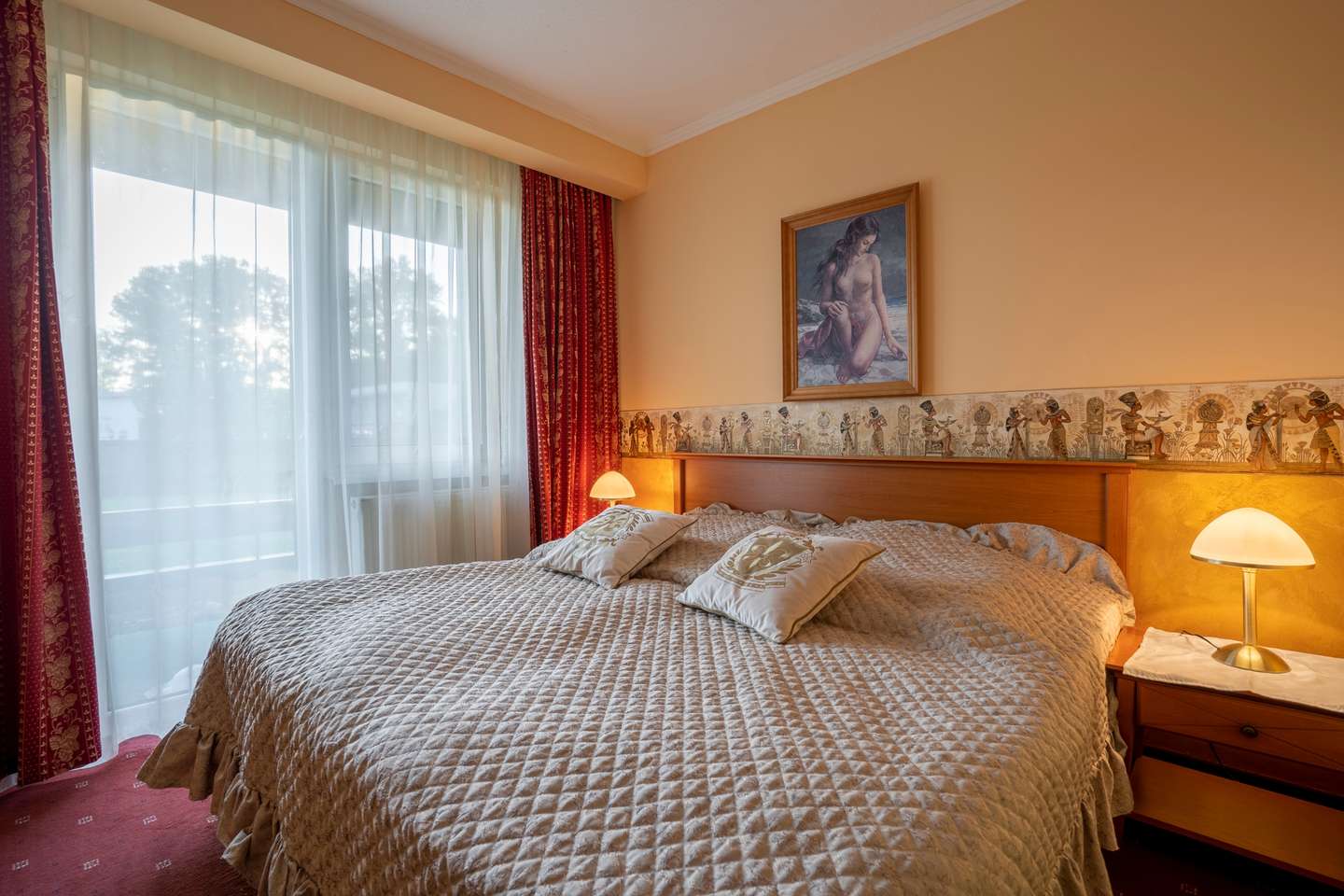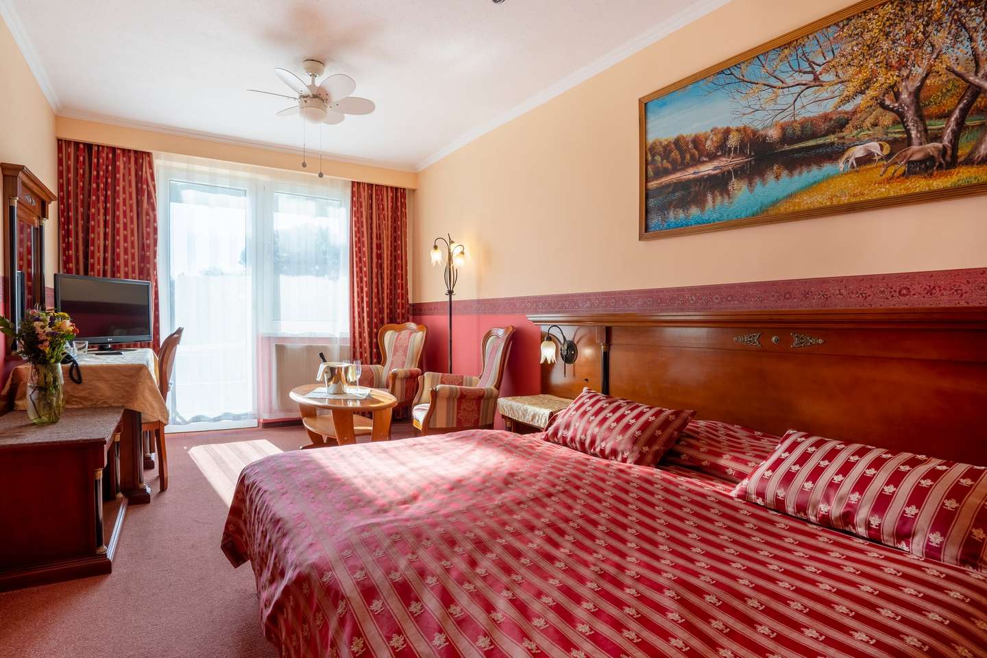 Hotel sa nachádza v parkovej časti s peknou výsadbou, okná sú smerované do záhrady či k jazeru. V okolí je svieži vzduch a množstvo možností na prechádzky a cykloturistiku na ceste okolo jazera Sĺňava len pár krokov od nášho hotela.