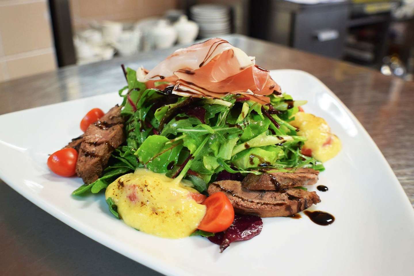 Kuchyňa je ľahká, zdravá a pritom gastronomicky pútavá. Nechajte sa rozmaznávať lahôdkami tej najvyššej úrovne v reštaurácii so štýlovou atmosférou. Jedlá pripravujú z miestnych surovín, používajú čerstvé mäso zo slovenských fariem či od rakúskych dodávateľov. Niektoré jedlá pripravujú technikou sous-vide, ktorá si kladie za cieľ maximalizovať chuť, textúru a nutričnú hodnotu jedál.
