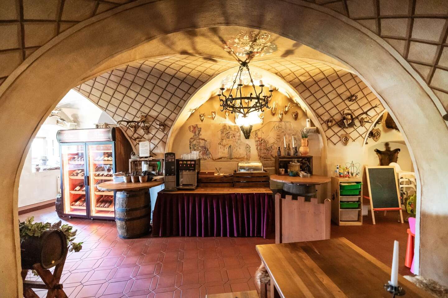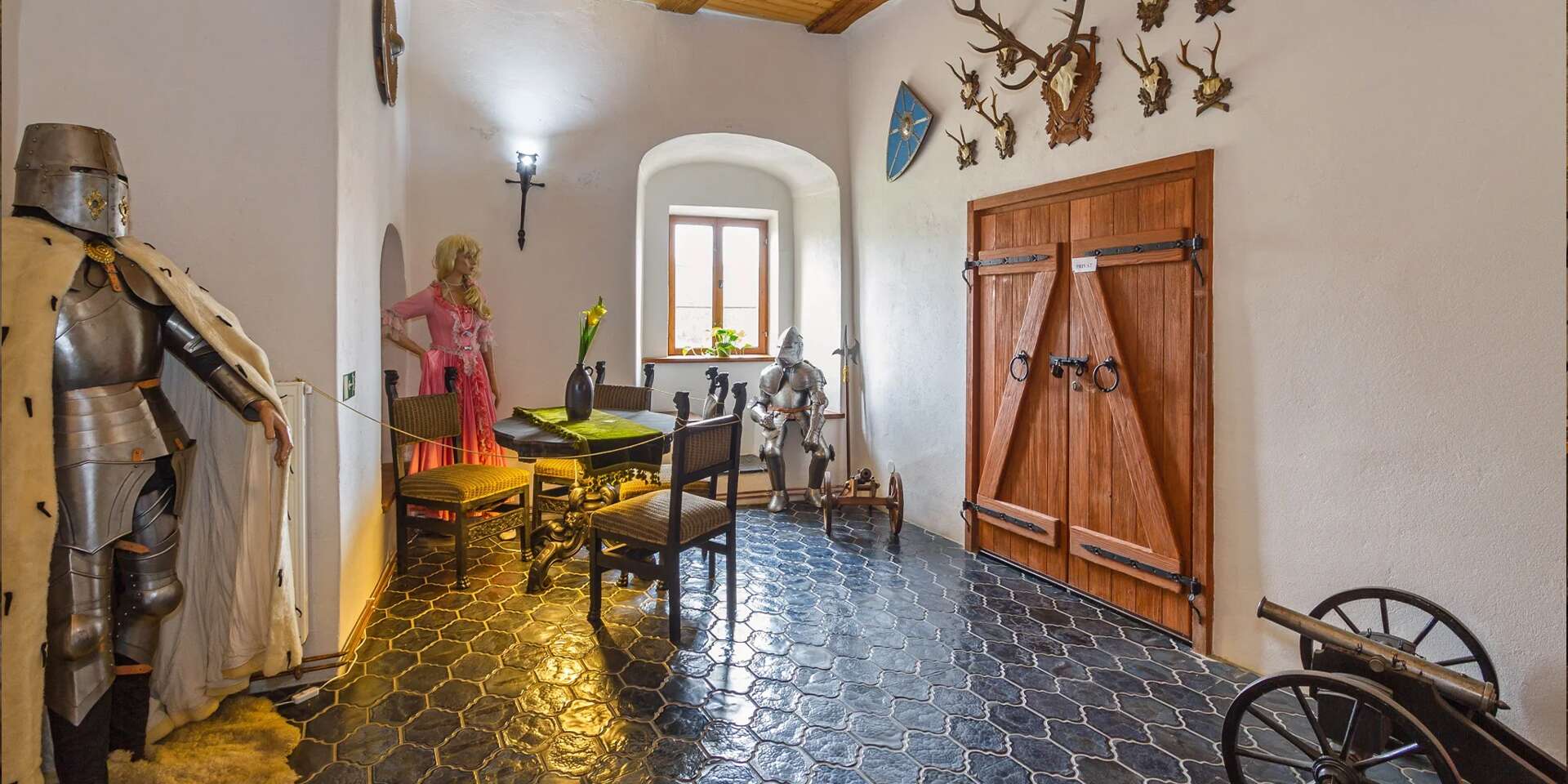 Stačí vstúpiť do hodovnej siene a razom sa ocitnete v stredoveku. Vôňa pečeného mäsa, praskanie ohňa a šum veselí vás vtiahnu do atmosféry dávnych hostín. Na stole pristane hostina hodná kráľov – poctivé české špeciality pripravené hradnými kuchármi, ktoré sa jedia nielen očami, ale aj srdcom.