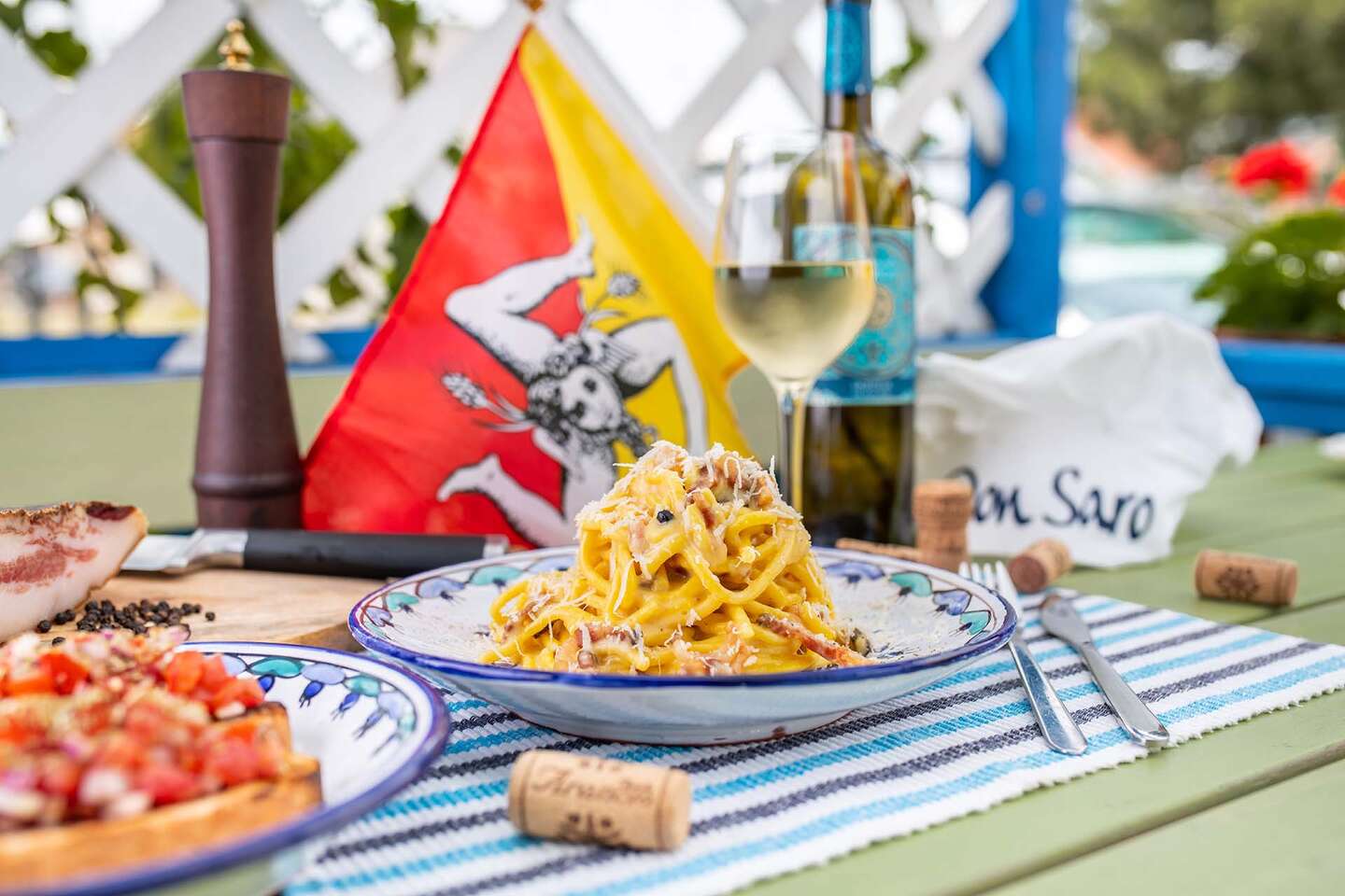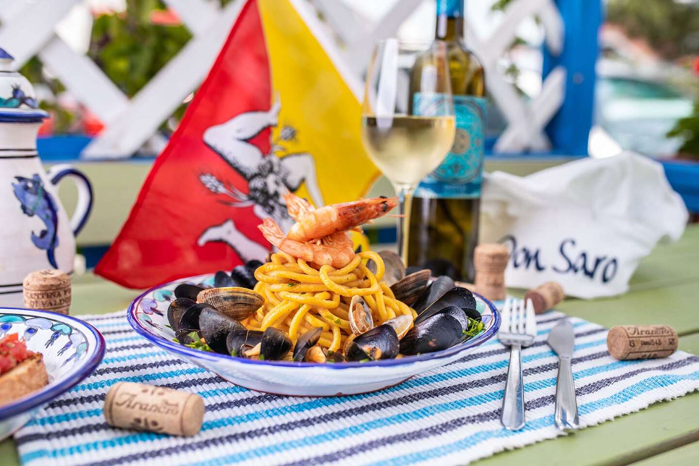 Objavte chuť Sicílie v rodinnej reštaurácií Don Saro Cucina Siciliana, kde nájdete aj kúsok talianskej pohostinnosti. Vychutnajte si autentické talianske špeciality pripravené s láskou a vášňou, od tradičných antipasti, cestovín a morských plodov, až po neodolateľné dezerty. Nechajte sa uniesť vôňou čerstvých byliniek a kvalitných surovín, ktoré vás prenesú priamo na slnečnú Sicíliu!