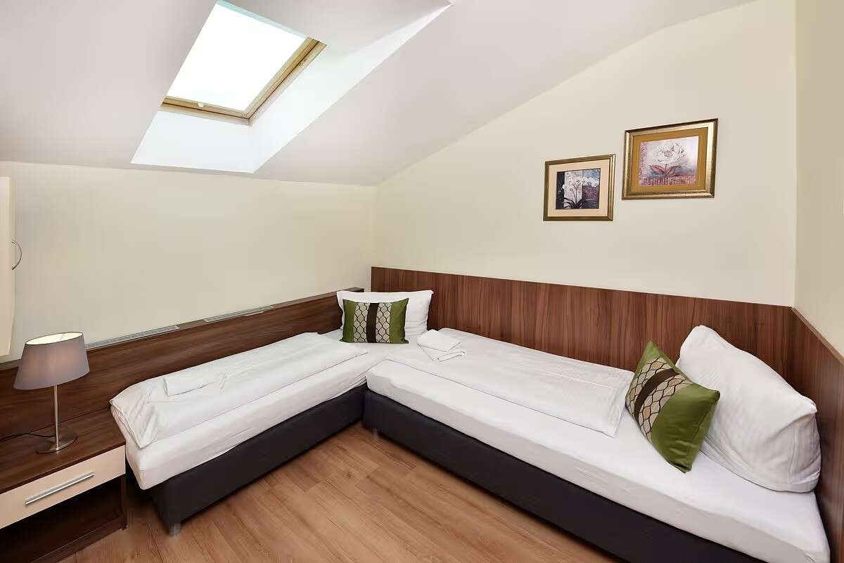 Apartmány sú zariadené v rôznych farebných kombináciách a k niektorým z nich prislúcha balkón.