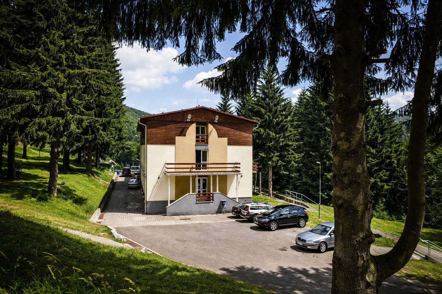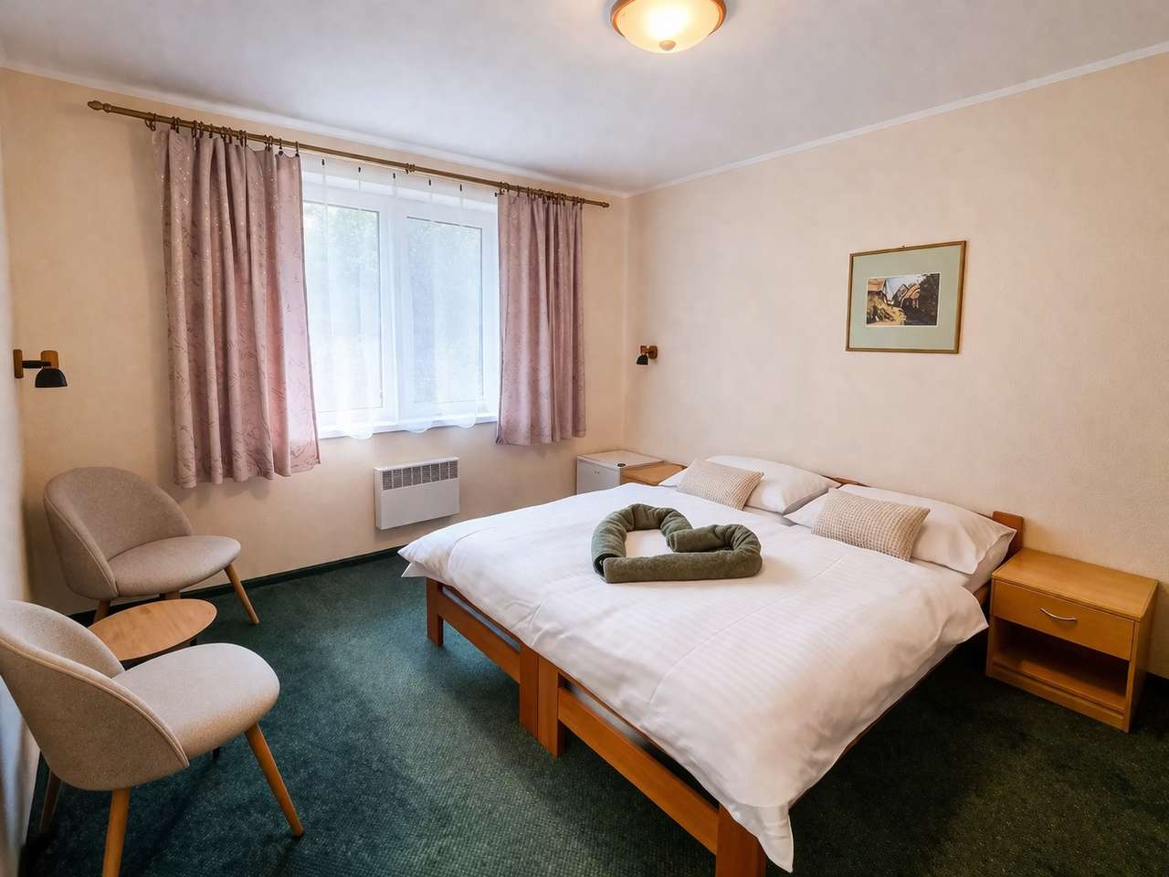 Ubytovanie je zabezpečené v komfortne zariadených izbách rôznych typov – od útulných dvojlôžkových až po priestranné rodinné izby s možnosťou jednej alebo dvoch prísteliek. Každá izba disponuje vlastnou kúpeľňou so sprchou a WC a bezplatným WiFi pripojením. Samozrejmosťou je praktické vybavenie ako napríklad rýchlovarná kanvica, pričom chladnička je k dispozícii na vyžiadanie. Niektoré izby ponúkajú aj balkón s výhľadom na okolitú prírodu.