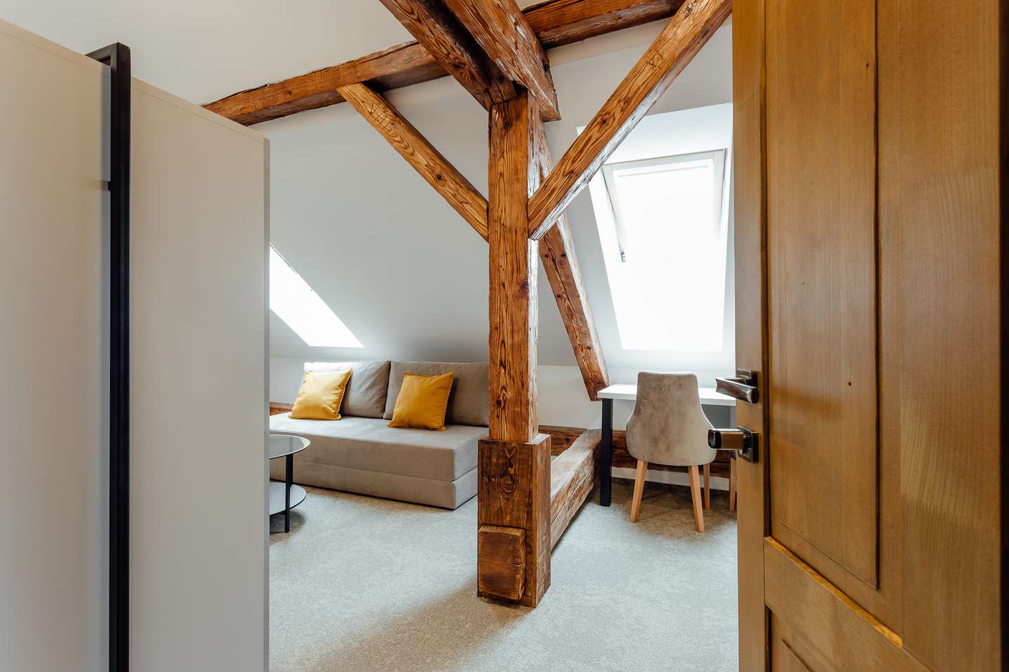Vybavenie izieb ničím nezaostáva za izbami Exclusive. Sú to izby podkrovného typu, nepôsobia preto tak vzdušne. V izbách sú priznané pôvodné trámy, ktoré sa podarilo zachovať.