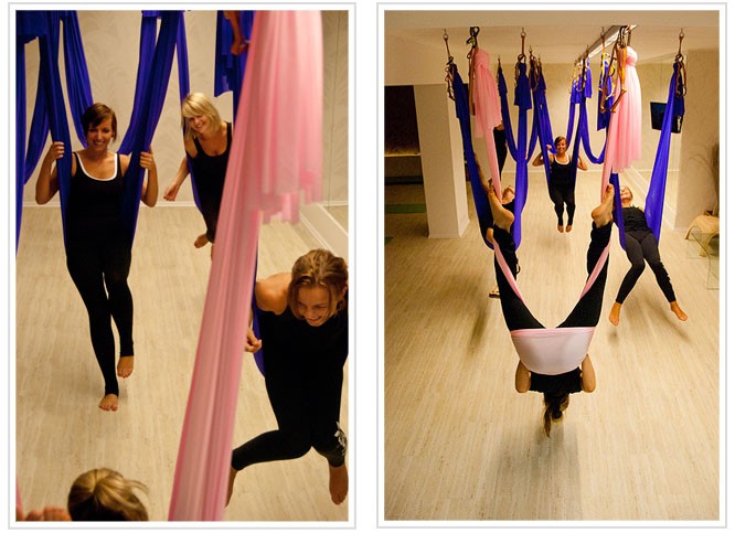 Otočte svoj svet hore nohami s našim cvičením Flyfit. Naplňte svoje sny o "lietaní" a prehojdajte sa s nami k dokonalej postave a zdraviu. Pri cvičení sa využíva rozloženie hmotnosti tela a gravitácia. Hodina prebieha v špeciálnej sieti z elastickej látky, zavesená na horolezeckých skobách približne meter nad zemou. Aj keď látka vyzerá na prvý pohľad veľmi jemne, nemusíte sa obávať udrží Vás. Flyfit môžete vyskúšať, či máte dvadsať, alebo päťdesiat rokov, či ste začiatočník, alebo pravidelne chodíte na aerobik, pilates, či do posilňovne. Je vhodný pre ženy aj pre mužov. Cvičenie ma veľmi veľa pozitívnych fyzioterapeutických účinkov pre telo, ktoré iné cvičenia nemajú. Ide predovšetkým o masáž lymfatických uzlín, úplné uvoľnenie krčnej chrbtice a chrbta, prekrvenie a tým aj okysličenie celého tela.Harmonizuje činnosť endokrinného systému, posilňuje kosti a väzivo, je výbornou prevenciou pred osteoporózou a ako aj pri iných cvičeniach spevňuje postavu, redukuje hmotnosť a stimuluje tvorbu endorfínov, ktoré uvoľňujú emocionálne napätie a vyvolávajú pocit dobrej nálady :)