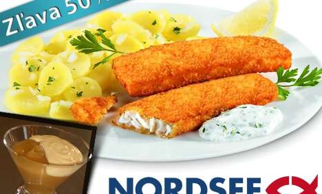 Vyprážaná aljašská treska so zemiakovým šalátom s remuládou a jablkové pyré s vanilkovým krémom v hodnote 8€ teraz za 3,99€. Len v NORDSEE v nákupných centrách Eurovea, Polus, Aupark alebo Avion!