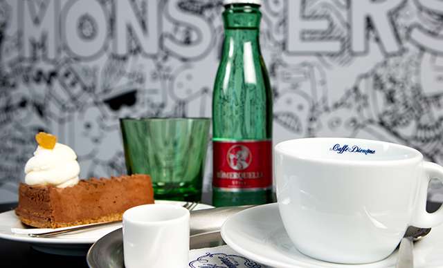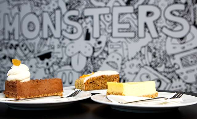 Presso, minerálka a k tomu mrkvová torta alebo cheescake na veľkej terase s nádherným výhľadom na rameno Dunaja alebo v príjemných priestoroch kaviarne MONSTERS cafe and bar.